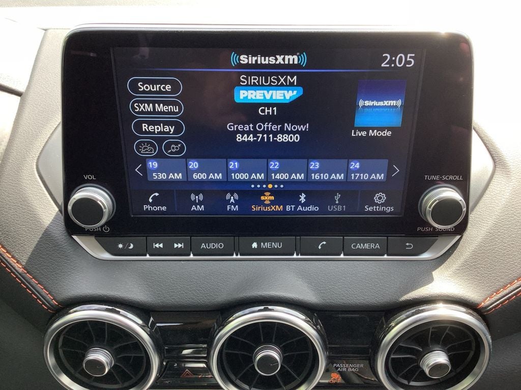 - Radio: AM/FM w/RDS/MP3/Aux-In -inc: 6 speakers plus 2 tweeters in A-pillar, 8" color display w/multi-touch control, streaming audio via Bluetooth®, Bluetooth® hands-free phone system, hands-free text messaging assistant, Siri Eyes Free, Google Assistant voice recognition w/Apple CarPlay and Android Auto, NissanConnect, (1) front USB connection port (type A), (1) additional front USB (type C), (1) charge-only USB (type A) center console and SiriusXM radio w/advanced audio features