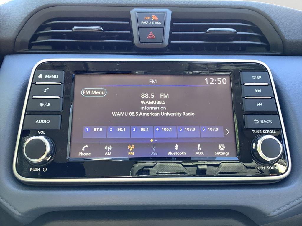 - Radio: AM/FM Audio System -inc: RDS, MP3, aux-in, 7" Advanced Drive-Assist Display, NissanConnect featuring Apple CarPlay and Android Auto, Bluetooth® hands-free phone system, streaming audio via Bluetooth®, interface for iPod and other compatible devices, hands-free text messaging assistant, Siri Eyes Free/Google Assistant voice recognition, 4 speakers and 3 USB ports (2-charge only)