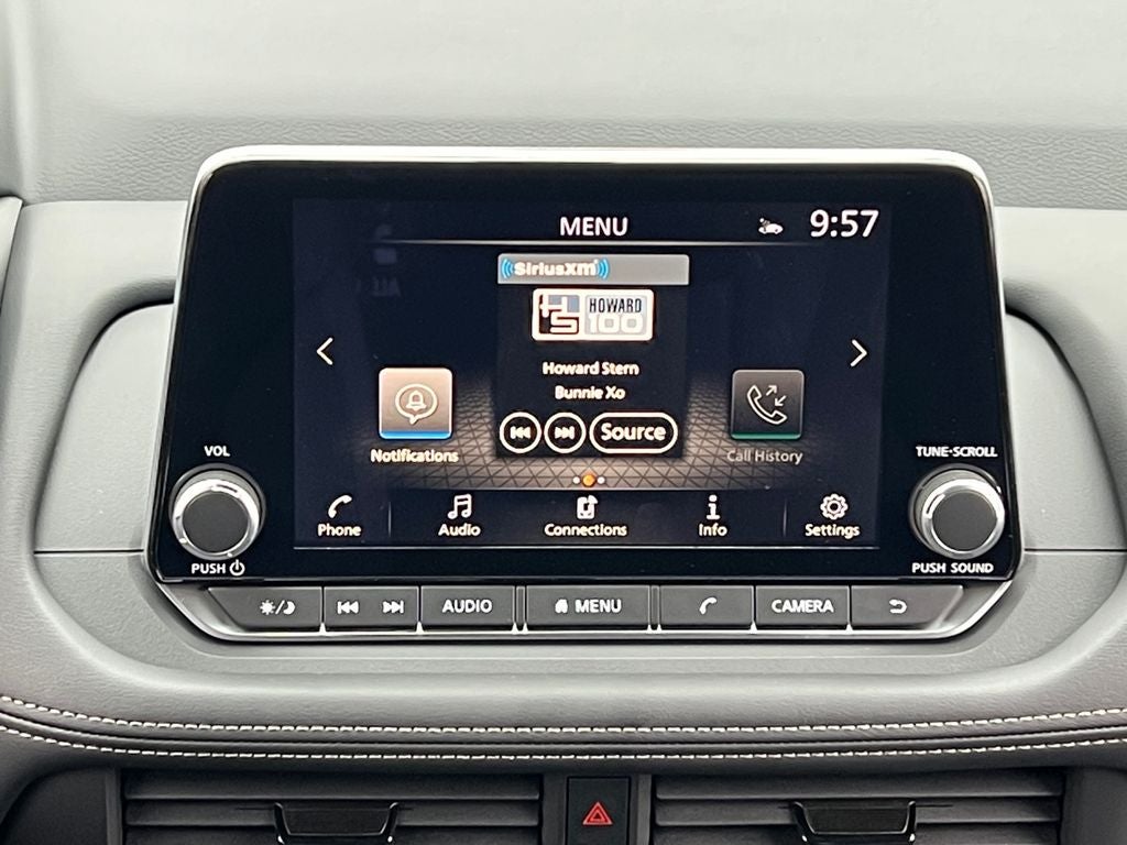 - Radio: AM/FM NissanConnect -inc: 6 speakers plus 2 tweeters, Apple CarPlay, Android Auto, 8" color touch screen display, Bluetooth®, 2 front USB type-C, Wi-Fi hotspot and NissanConnect Services powered by SiriusXM