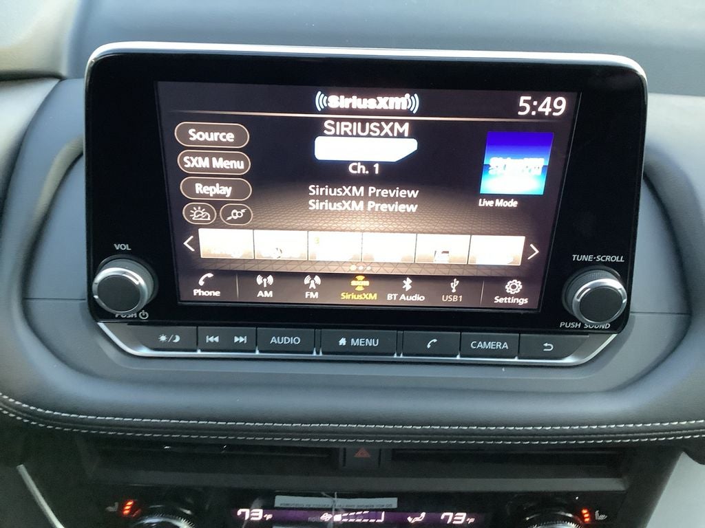 - Radio: AM/FM NissanConnect -inc: 6 speakers plus 2 tweeters, Apple CarPlay, Android Auto, 8" color touch screen display, Bluetooth®, 2 front USB type-C, Wi-Fi hotspot and NissanConnect Services powered by SiriusXM